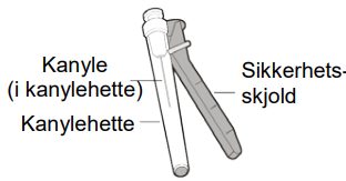 Injeksjonskanyle med sikkerhetsskjold (brukes til å injisere legemidlet).