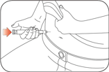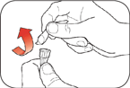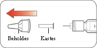 Skru av kanylen med beskyttelseshetten på og kast den som vist nedenfor (se Kassering av penner og kanyler).