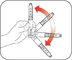 Benytt en ny kanyle for hver injeksjon. Fjern luftbobler før hver injeksjon. Du kan se omtrent hvor mye insulin som er igjen i pennen ved holde KwikPen med kanylen pekende loddrett oppover. Skalaen på sylinderampullen viser omtrent hvor mange enheter som er igjen i pennen.