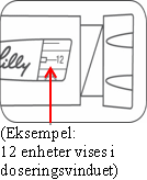 Det er ikke mulig å stille inn en dose som er større enn antallet enheter igjen i pennen.