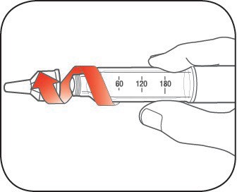 Fortsett å holde pennen med kanylen pekende oppover. Press doseringsstempelet inn inntil det stopper og ”0” vises i doseringsvinduet. Hold doseringsstempelet inne og tell sakte til 5.