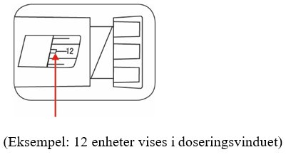Vri doseringsknappen for å velge antallet enheter du skal injisere. Doseindikatoren skal være på linje med dosen som skal injiseres.