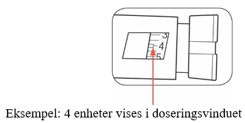 Vri doseringsknappen for å velge antallet enheter du skal injisere. Doseindikatoren skal være på linje med dosen som skal injiseres.