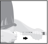 Snu den ferdigfylte pennen slik at den hvite pilen peker mot injeksjonsstedet.