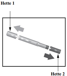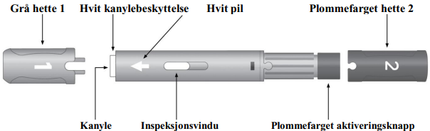 Den ferdigfylte pennen oppbevares i ytterpakningen for å beskytte mot lys.