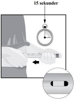 Injeksjonen er ferdig når den gule indikatoren har sluttet å bevege seg.