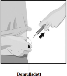 Etter endt injeksjon, plasser en bomullsdott eller gasbind på huden over injeksjonsstedet.