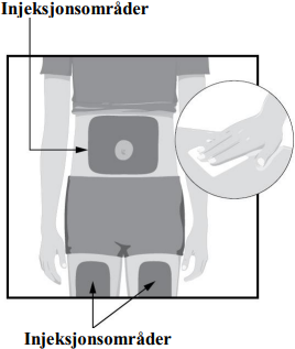 Bruk det vedlagte injeksjonstørket og tørk injeksjonsstedet med ringbevegelser.