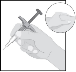 Hold den ferdigfylte sprøyten i den ene hånden mellom tommel og pekefinger, som du holder en blyant.