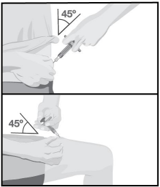 Når injeksjonen er ferdig drar du kanylen sakte ut av huden samtidig som du holder den ferdigfylte sprøyten i samme vinkel.