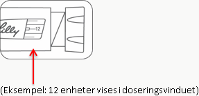 Det er ikke mulig å stille inn en dose som er større enn antallet enheter igjen i pennen