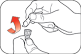 Skru av kanylen med beskyttelseshetten på og kast den som vist nedenfor (se Kassering av penner og kanyler).