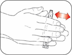 Roter pennen forsiktig 10 ganger mellom håndflatene.