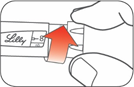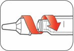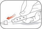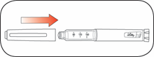 Sett på pennhetten ved å plassere hetteklipset og doseindikatoren på linje og press hetten rett på.