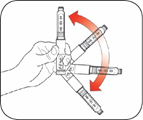 For å kontrollere pennen din: Vri doseringsstempelet til 2 enheter.