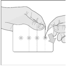 1. Frigjør én kapsel: riv langs perforeringen for å separere én kapsel fra remsen.