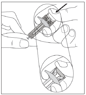 ikke berører vingene til nålbeskytteren før bruk. I så fall kan nålbeskytteren bli aktivert for tidlig. Ikke ta av fingerstopperen før injeksjonen.