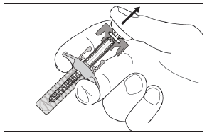 Trekk forsiktig nålhetten rett ut og bort fra sprøyten (se Figur G).
