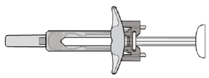 Slipp stempelet sakte ut, og la nålbeskytteren automatisk dekke over den utstikkende nålen (se Figur K).