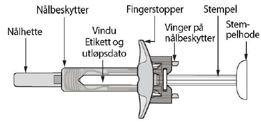 Ikke bruk sprøyten dersom den har blitt skadet eller nålbeskytteren har blitt aktivert. Lever sprøyten og emballasjen den kom i, tilbake til apoteket.