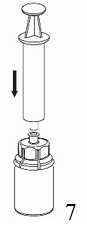 8. Med sprøytestemplet inntrykt snur du systemet opp ned og trekker oppløsningen inn i sprøyten ved å trekke stempelet sakte ut.