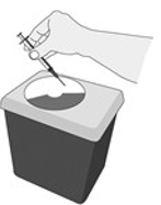 11. Kast kanyler og sprøyter på en sikker måte i beholderen for spisse gjenstander eller etter instruksjonene du har fått av helsepersonell eller apotek. Bruk aldri sprøyter eller kanyler flere ganger.