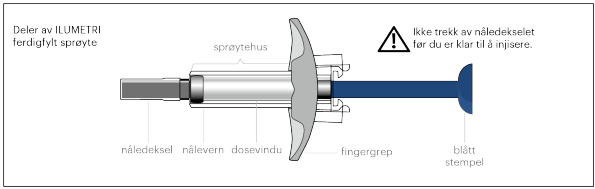Slik ser den ferdigfylte sprøyten med Ilumetri ut: