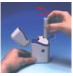 Trykk GlaxoPen ned i den åpne beholderen og vri den mot høyre til den stopper.