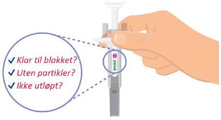 Sørg alltid for at legemidlet er klart til blakket, fargeløst til lysebrunt, fritt for partikler og ikke har utløpt på dato. Hvis legemidlet ikke er klart til blakket, fargeløst til lysebrunt, fritt for partikler eller hvis det har utløpt på dato, må du ikke bruke det.