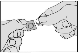 Ikke press legemidlet gjennom folien. Det kan skades fordi det lett går i oppløsning.
