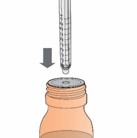 Trykk stempelet forsiktig helt inn for å administrere Jakavi mikstur, oppløsning.