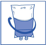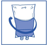 Fjern sprøyten og bland innholdet i infusjonsposen manuelt med gyngende bevegelser.