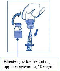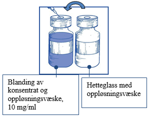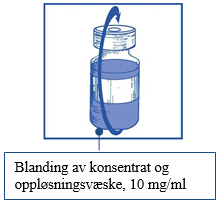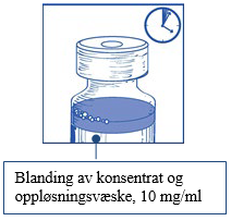 Fortynn alltid konsentratet til infusjonsvæske med hele volumet av den medfølgende oppløsningsvæsken før tilsetning til infusjonsvæsken.