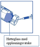 Trekk ut hele volumet av den medfølgende oppløsningsvæsken med en sprøyte ved å delvis snu hetteglasset opp ned. Bruk aseptisk teknikk.