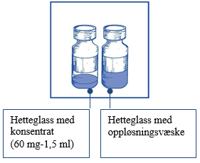 NB: Både hetteglasset med JEVTANA 60 mg/1,5 ml konsentrat (fyllvolum: