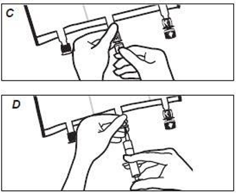 Hold tilsetningsporten, stikk inn kanylen i portens sentrum og injiser tilsetningen (med kjent forlikelighet) (Bilde D).