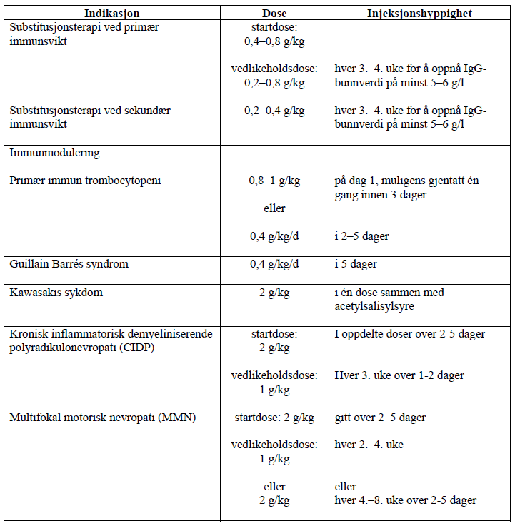 De samme indikasjonene, samme dosering og infusjonshyppighet som hos voksne, gjelder for barn og ungdom (0-18 år).