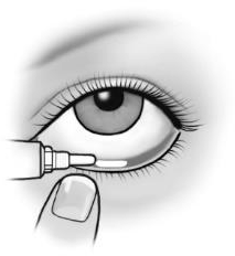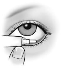 2. Trekk ned nedre øyelokk, sett tubespissen i lommen som dannes mellom øyelokket og øyet langs øyet og se opp.