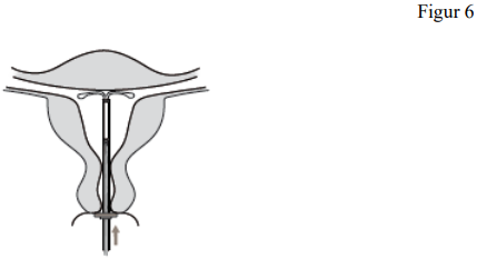 6. Før innføringshylsen forsiktig videre mot fundus i uterus inntil måleringen berører cervix.