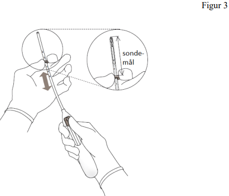 3. Mens glideknappen holdes i ytterste posisjon, plasseres oversiden av måleringen slik at lengden tilsvarer sondemålet av uterus (figur 3).