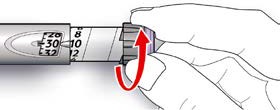 Trykk ikke på injeksjonsknappen mens du vrir den, for da vil det komme ut insulin.