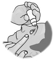velg den stillingen du synes er mest behagelig for å dryppe dråpene (du kan sitte, ligge på ryggen eller stå foran et speil)