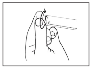 4) Sjekk at endehetten fra den ferdigfylte sprøyten er helt fjernet. Hvis ikke, sett på hetten og vri igjen.