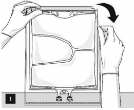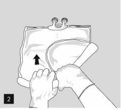 Åpning: Riv opp ytterposen ved å dra i rivekantene (figur 1). Ta posen ut av den beskyttende ytterposen. Kast ytterpose, oksygenindikator og oksygenabsorbent.