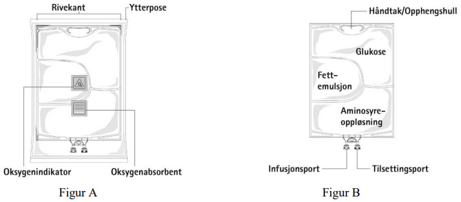 Preparater for parenteral ernæring skal inspiseres visuelt med hensyn til skade, misfarging og ustabil emulsjon før bruk.