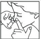 Hold sprayflasken som vist på bildet. Bøy hodet lett framover. Hold for det ene neseboret og sett sprayflasken i det andre.