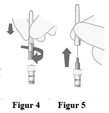 5. Knekk av sprøytehetten (den skal ikke dreies eller vris) (se figur 2).