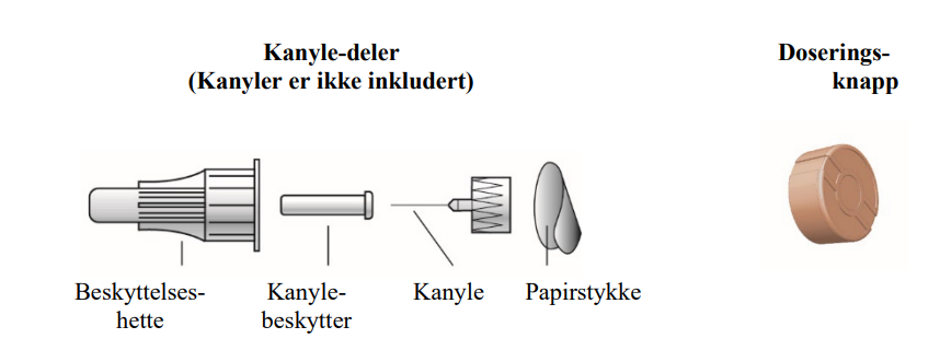 Bruk alltid en ny kanyle for hver injeksjon for å forebygge infeksjoner og for å unngå at kanylen tettes.