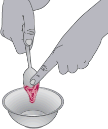Legg en liten mengde (1-2 teskjeer eller 5-10 ml) med myk mat i en bolle.