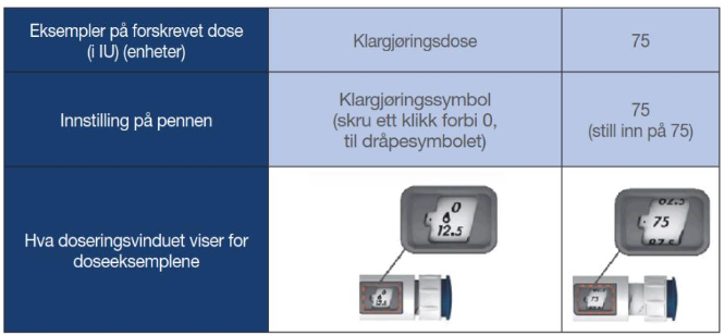 Før pennen brukes første gang, må eventuelle luftbobler fjernes fra sylinderampullen (klargjøring) for at riktig dose skal kunne gis.